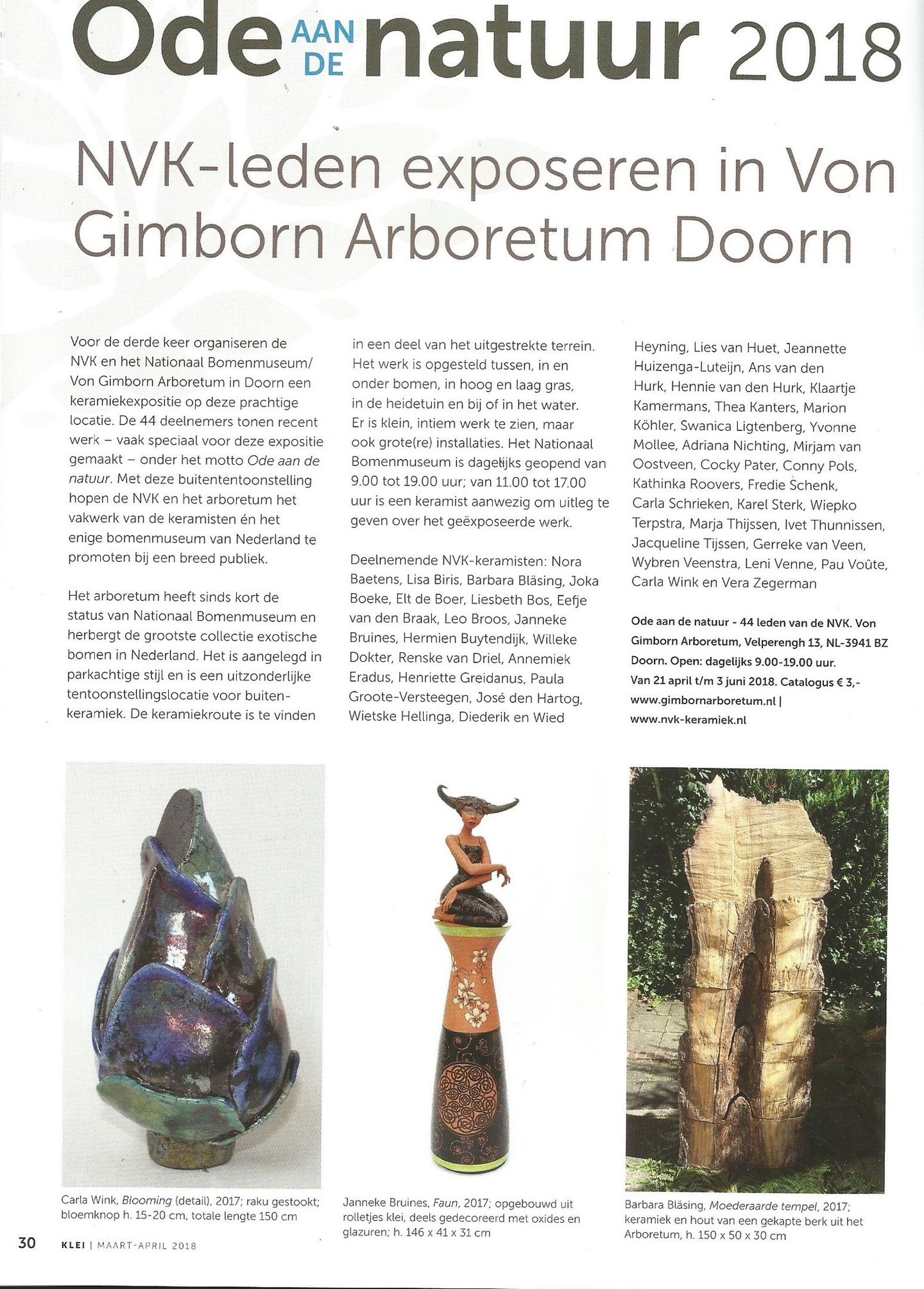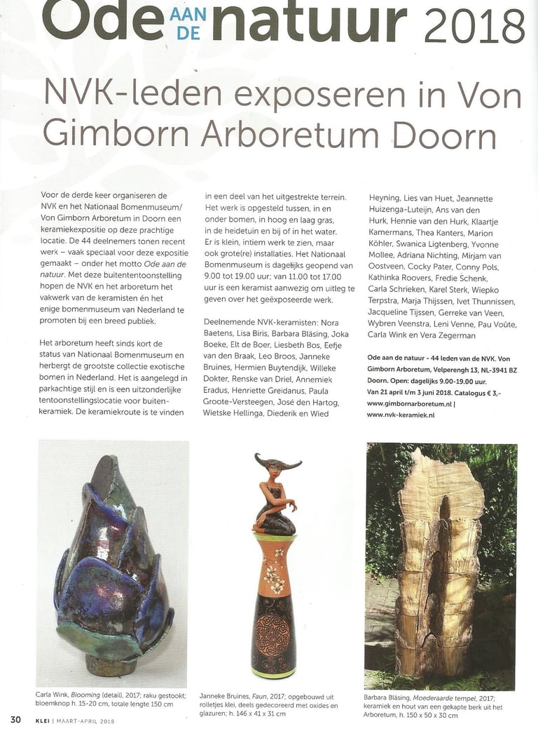 Ode aan de Natuur is al vijf keer in het Nationaal Bomenmuseum Gimborn te zien geweest. Elke editie was volop genieten van bijzondere keramiek in een prachtige setting